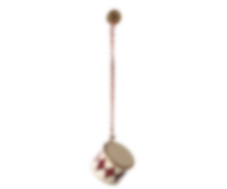 Trumma i metall med fint rutigt mönster och snöre för upphängning. Häng i julgranen eller som dekoration i barnrummet. Perfekt liten present till paketkalendern.