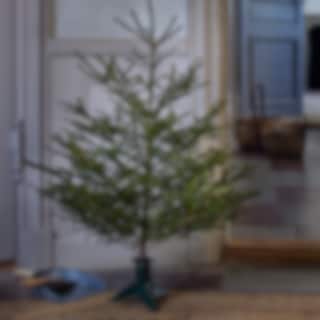 Liten julgransfot i grönlackerad plåt för små julgranar. Tre skruvar för att fästa stammen.