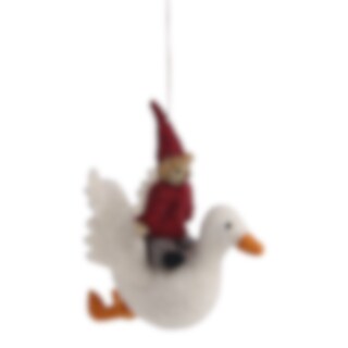 En tovad liten nisse på en gås från Gry & Sif. Häng den i granen, eller ställ tillsammans med andra figurer från Gry & Sif för att skapa ett litet jullandskap.