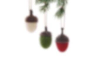 Tre gulliga, tovade ekollon att hänga på kvistar, i fönstret eller i granen.