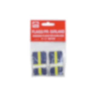 Förpackningen innehåller två girlanger som är 2 meter långa med 20 st flaggor på varje snöre.