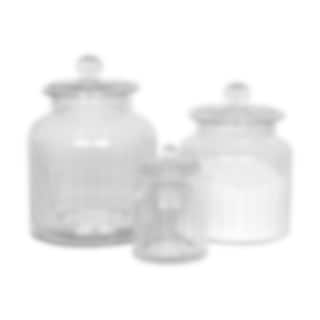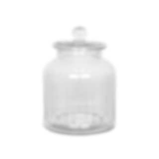Liten glasburk i räfflat glas med lock. Perfekt förvaring i t.ex. köket eller badrummet. Ej tätslutande lock.