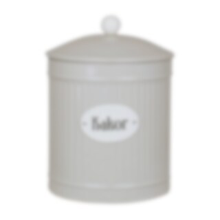 Rund plåtburk med lock med texten Kakor. Från plåtburksserien Hugo Beige.
