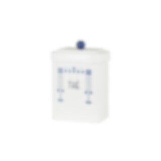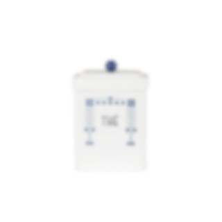 Plåtburk med lock och gammaldags motiv av en dekorativ bård och texten thé. Plåtburken är handgjord vilket innebär att olikheter och ojämnheter kan förekomma.
