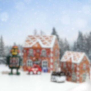Söt plåtburk för julens godsaker, fyll med pepparkakor, julgodis eller knäck. Burken ser ut som ett pepparkakshus med kristyr och snö. Motiv av Dana Kubick.