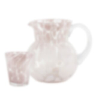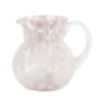 En vacker och elegant kanna i transparent glas och fina rosa prickar. Perfekt till att servera en avsvalkande lemonad, saft eller sangria i, och blir en snygg dekoration i köket eller på middagsbordet. Tål diskmaskin.