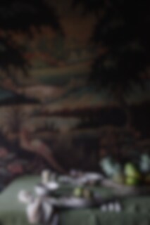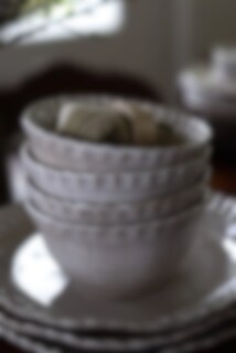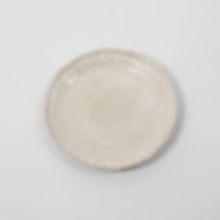 En vacker och handmålad assiett i beige finnish med dekorativa kanter. Perfekt att duka bordet med.
