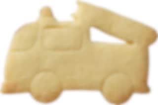 Kakmått i form av en brandbil i rostfritt stål.