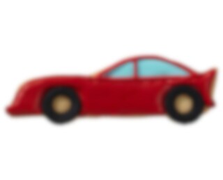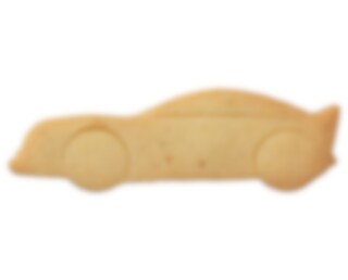 Kakmått i form av en sportbil i rostfritt stål med mönster inuti.