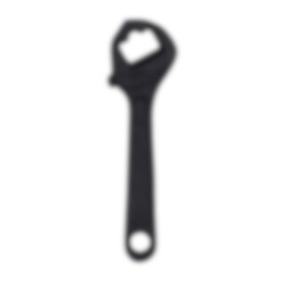 Kapsylöppnare i form av en skiftnyckel i svart gjutjärn. En perfekt present till den händige eller som inflyttningspresent till nya husägare.