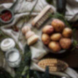Rotfruktsborste av FSC-märkt bokträ med borst i en blandning av vegetabilisk fiber och piasava. Träborsten passar för skrubbning av potatis och rotfrukter.