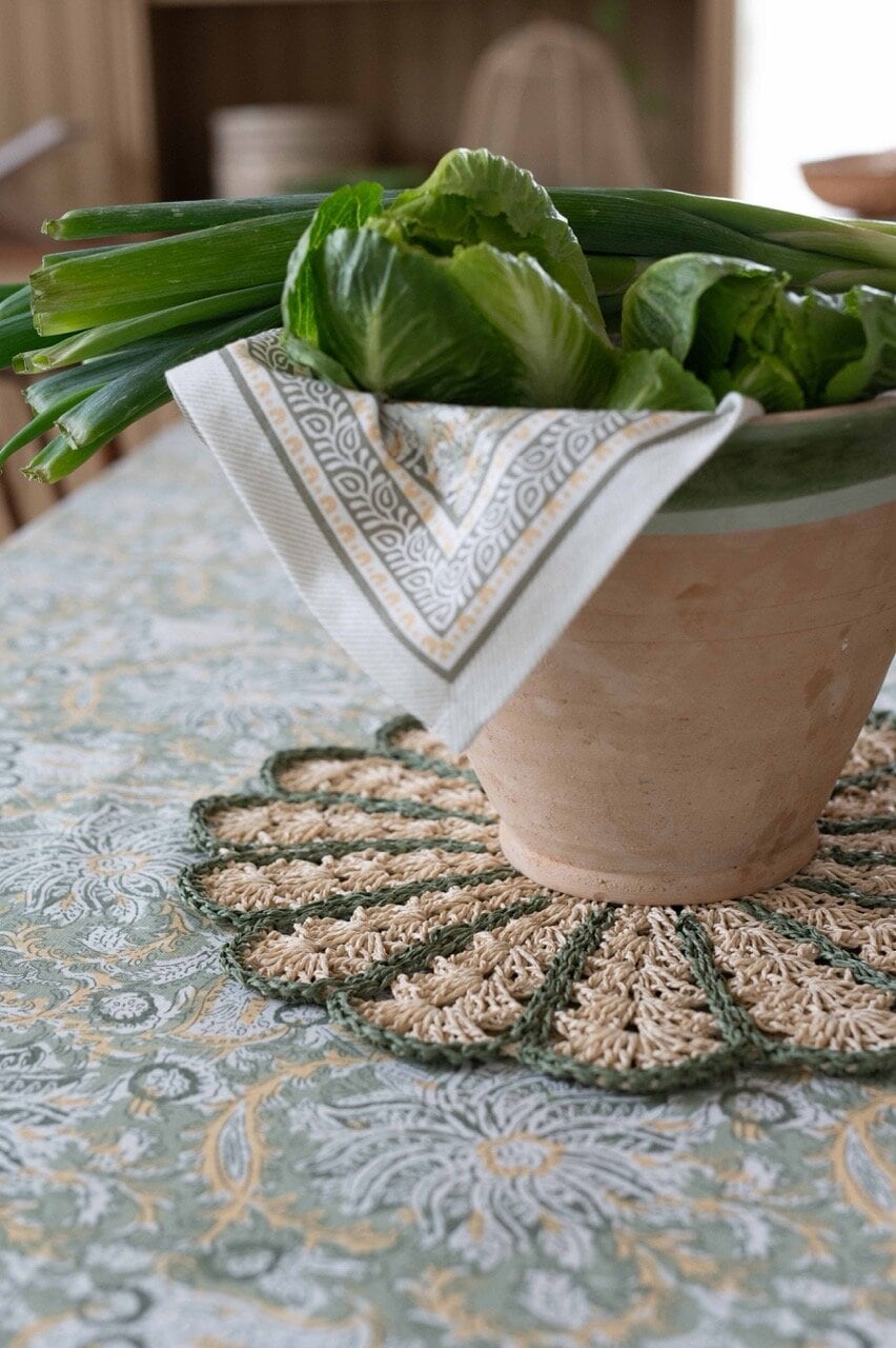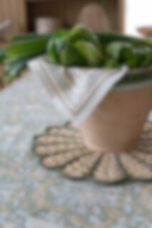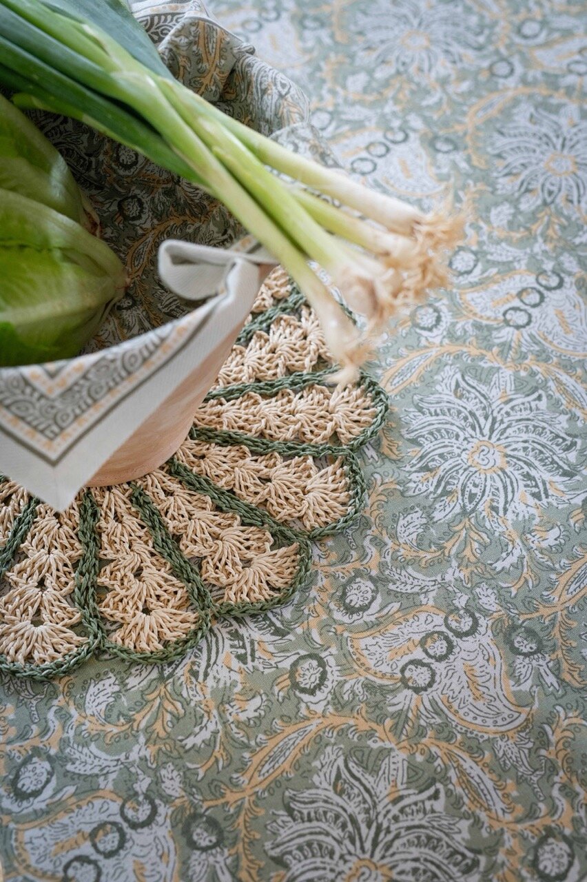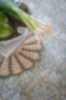 Tablett formad som en blomma, tillverkad av papper i ljuvliga färger som för tankarna till vår och sommar. En vacker och enkel detalj som passar lika bra till festliga tillfällen som till vardagens måltider.