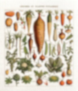 Underbar disktrasa med ett fantastiskt vintage botaniskt motiv med olika grönsaker och köksväxter.
