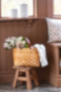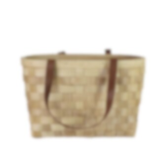 Rektangulär naturfärgad flätad korgväska med två läderhandtag. Perfekt att ta med till stranden eller picknicken.