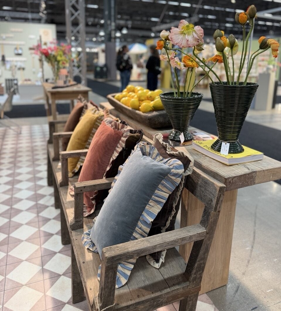 Ljuvligt kuddfodral i blå sammet med blårandig volang.