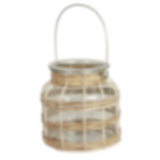 Rustik ljuslykta i glas med vackra detaljer av bambu samt ett praktiskt handtag. Skapa en mysig atmosfär i hemmet, på balkongen eller i trädgården.
