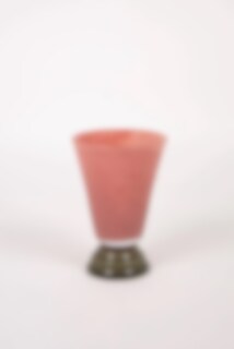 En handgjord och elegant glasvas med en fin gammelrosa ton och livfull design. Blir en snygg dekoration i hemmet.