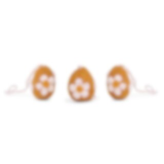 Söta, tovade ägg i gul färg med vita blommor, från Gry & Sif. Går att hänga i t.ex. påskriset eller dekorerara påskbordet med.
