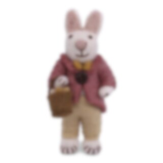 En liten tovad kanin med en rosa jacka och en korg med ägg, från Gry & Sif. Fin att hänga tillsammans med andra figurer från Gry & Sif.