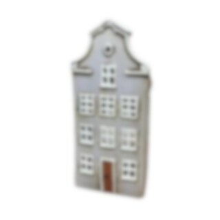 Trendigt danskt keramikhus för värmeljus. Detta hus är färgat grått med vitt tak.