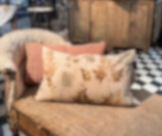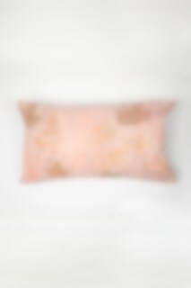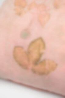 Ljuvligt kuddfodral i rosa bomull med ett blomstermönster tryckt ekologiskt med naturliga material.