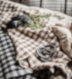 Rutig kökshandduk i beige och vitt, med ögla för upphängning. Säljes i 3-pack.