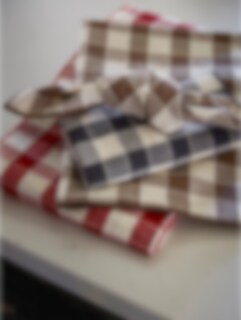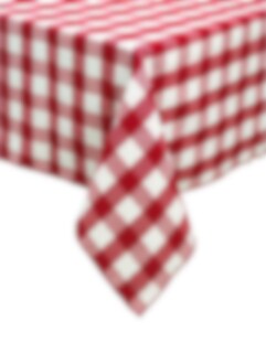 Duk med rödrutig design. Fin att använda som dukning till julbordet.