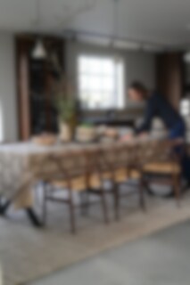 Duk i bomull med ett magnifikt mönster och vacker bård längs långsidorna. En duk i ljuva färger som förhöjer rummets atmosfär.