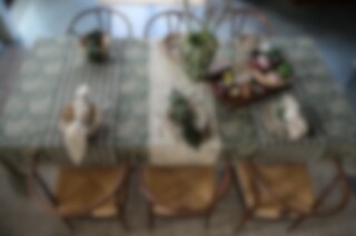 Duk i bomull med ett magnifikt mönster och vacker bård längs långsidorna. En duk i ljuva färger som förhöjer rummets atmosfär.