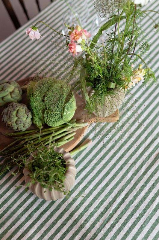 En randig duk i en ljuvlig grön färg. Ett elegant och stilfullt tillägg till din bordsdukning.
