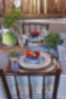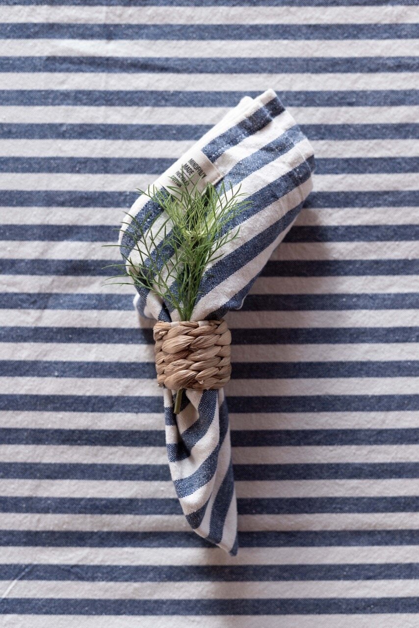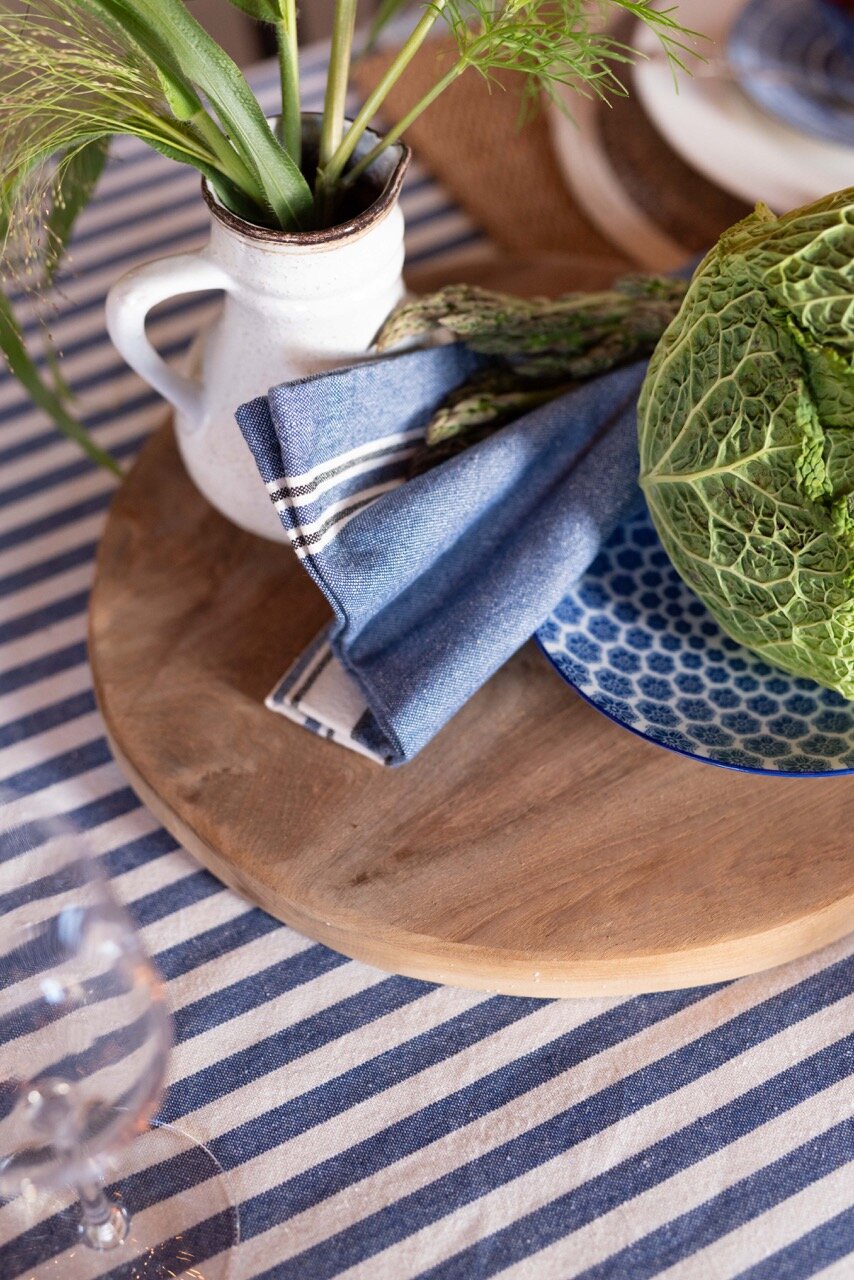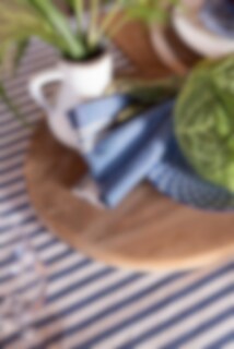 En randig duk i en ljuvlig blå ton. Ett elegant och stilfullt tillägg till din bordsdukning.