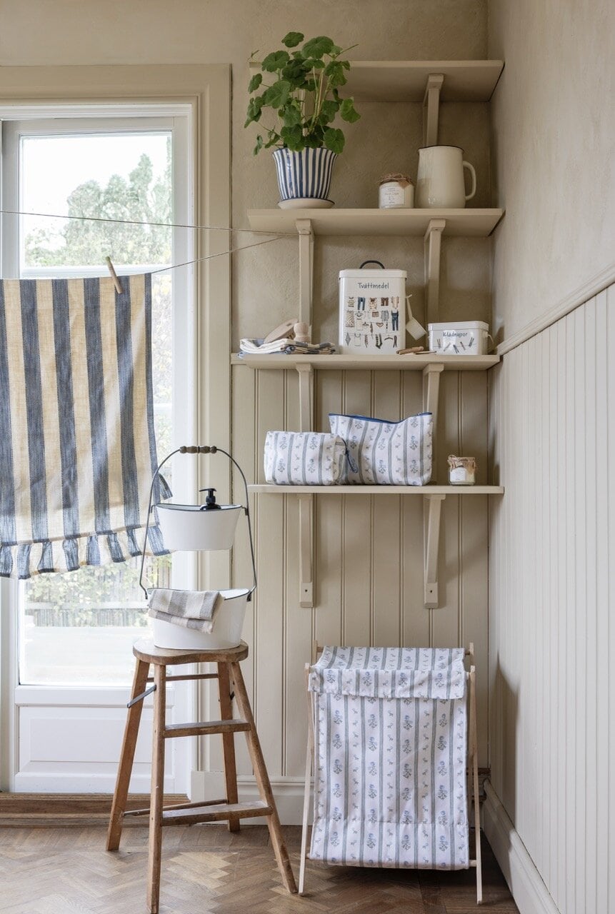 Löpare i 100% ekologisk bomull med klassiskt bredrandigt mönster och en vacker volang i varje ände. Fin att matcha med andra produkter i samma serie.