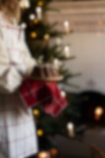 Vitt förkläde i 100% ekologisk bomull med klassiska rutmönster i rött. Praktisk ficka framtill, knytband i midjan och reglerbart band i nacken.