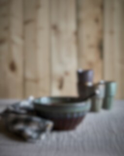 Rutig servett i vitt och grönt, med ögla för upphängning.