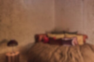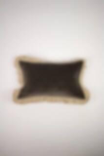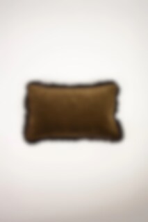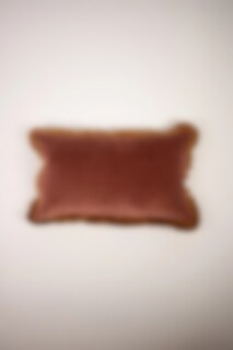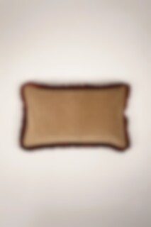 Ljuvligt kuddfodral i rostrosa sammet med kamelfärgad volang.