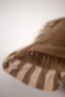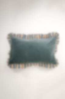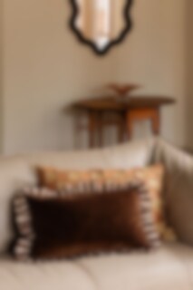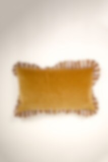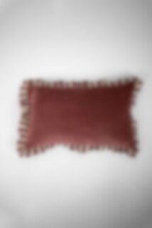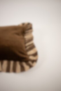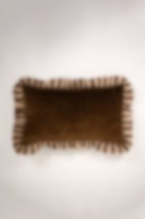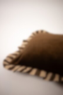 Ljuvligt kuddfodral i brun sammet med brunrandig volang.
