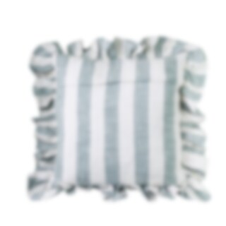 Kuddfodral i 100% ekologisk bomull med klassiskt bredrandigt mönster och en vacker volang. Dold dragkedja på baksidan. Fin att matcha med andra produkter i samma serie.