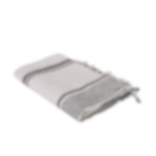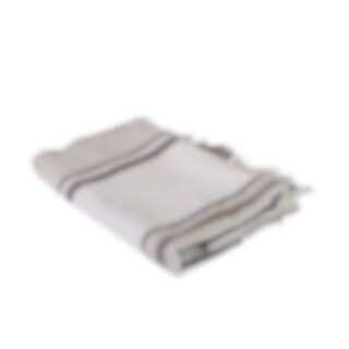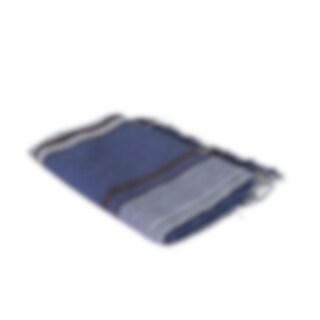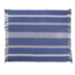 Pläd av skön bomull med vävt randigt mönster i blått, brunt och vitt med fransar. Passar fint på balkongen, uteplatsen eller på picknicken..