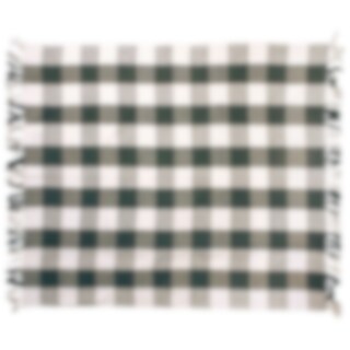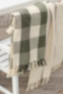 Pläd av skön bomull med vävt storrutigt mönster i vitt och grönt med fransar. Passar fint på balkongen, uteplatsen eller på picknicken.