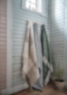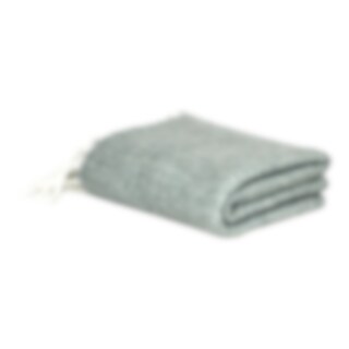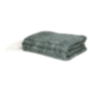 Mjuk och skön pläd i vävt och filtat material, med fransar i vitt.