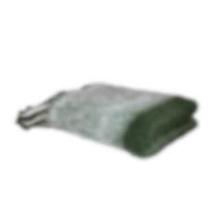 Mjuk och skön pläd i vävt och filtat material, med fransar. Mönster med fält i olika nyanser av grönt på vit bas.