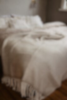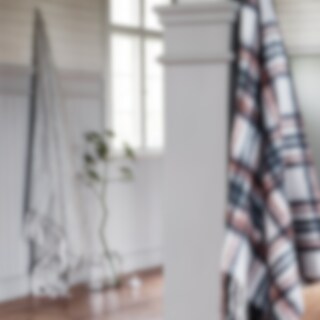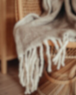 Mjuk och skön pläd i vävt och filtat material, med fransar i vitt.