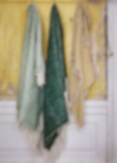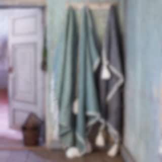 Mjuk och skön pläd i vävt och filtat material, med fransar i vitt.
