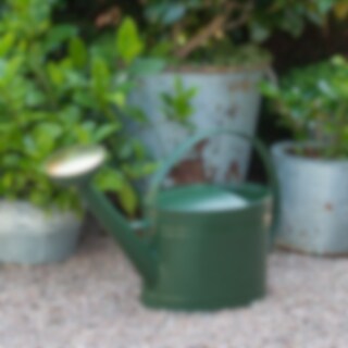 Rejäl och vacker vattenkanna i lackerad, mörkgrön plåt med avtagbar stril.