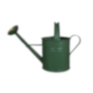 Dekorativ och praktisk vattenkanna med tvåhandsfattning i lackerad, matt mossgrön plåt. Avtagbar stril.