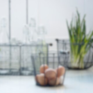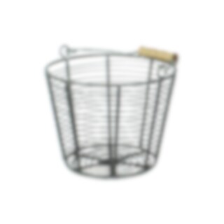 Liten trådkorg med trähandtag för förvaring av t.ex ägg och frukt eller fyll med något trevligt och ge bort som en gå-bort-present med cellofan.